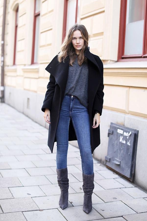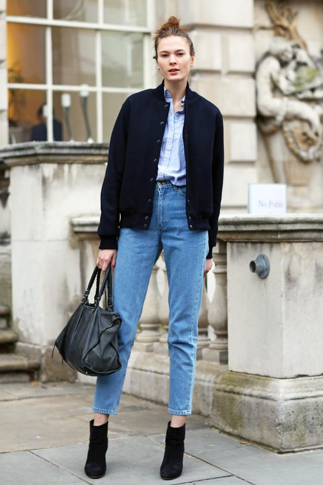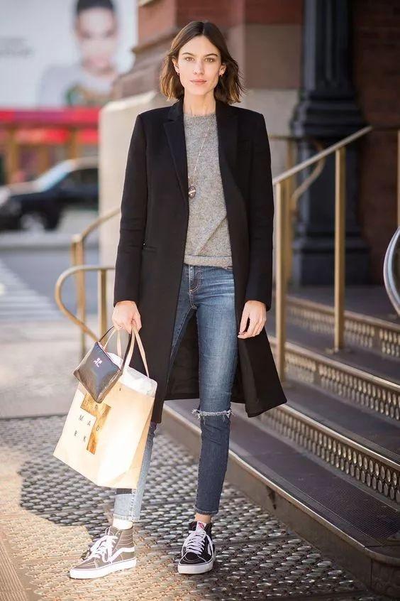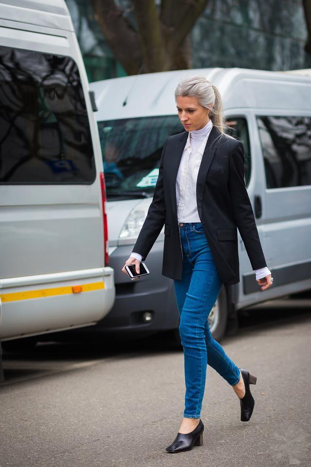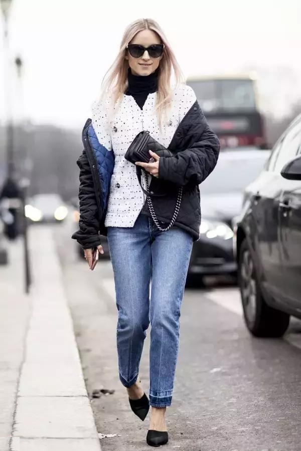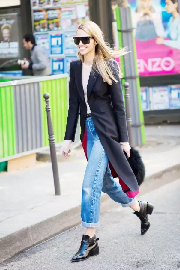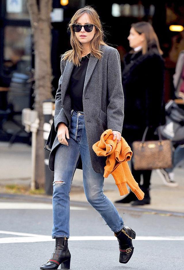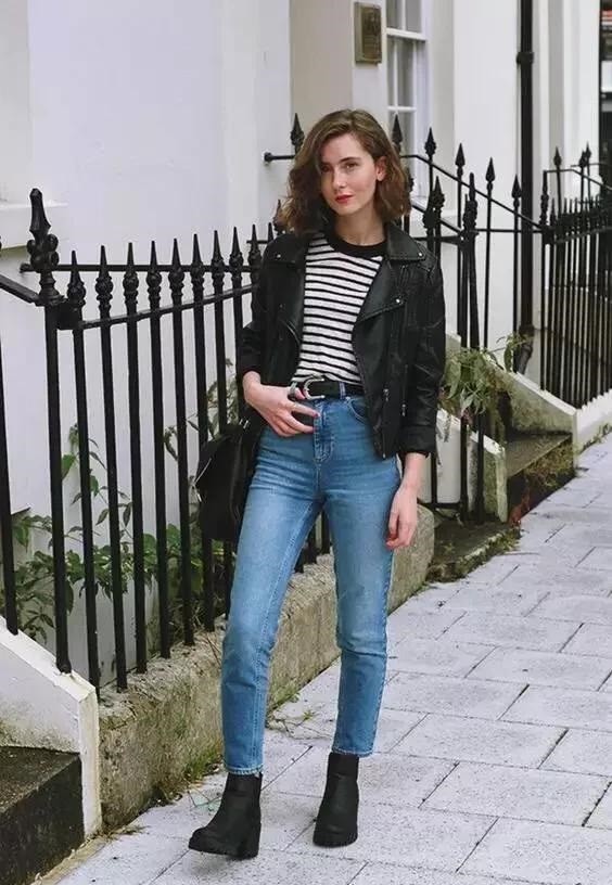 這三套就很適合早春穿著,牛仔褲搭配一件小外套,再加上一雙粗跟的及踝靴,既有風度也有溫度。