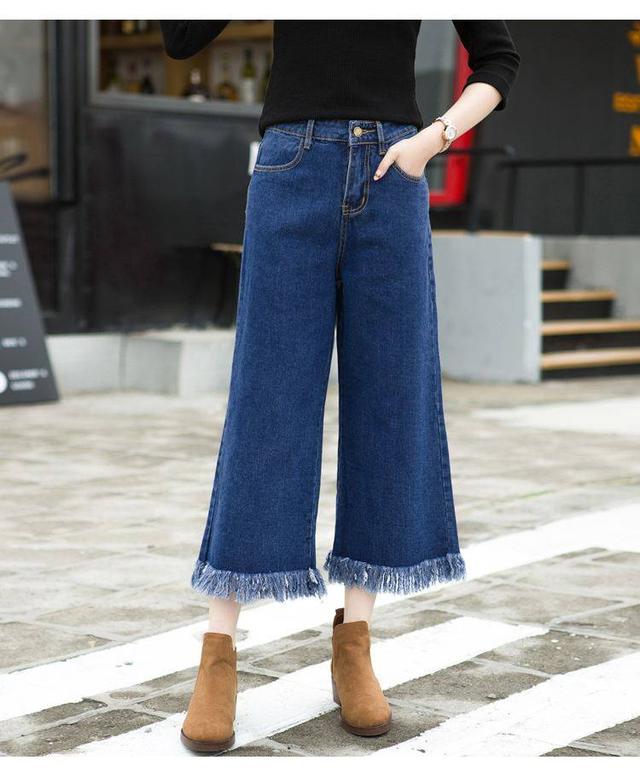 推薦理由:這條直筒牛仔褲,毛邊的設計為整條褲子增加了一份別樣的是時尚,