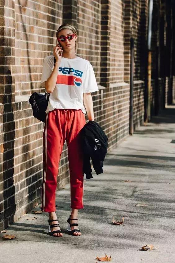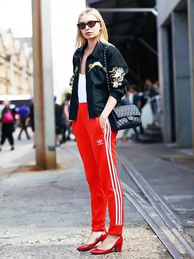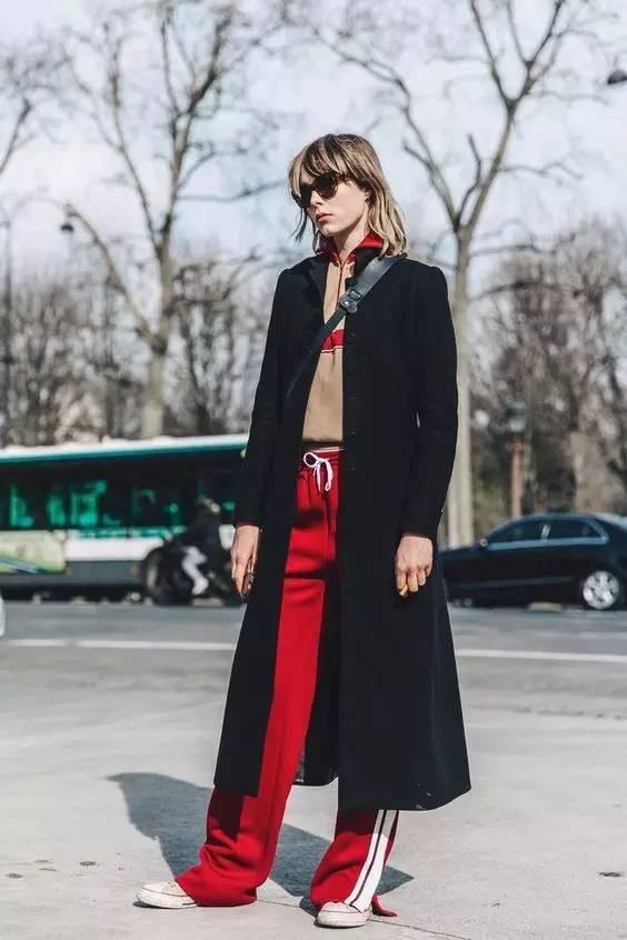 氣場穿搭靠的就是搭配,如以下這條闊腿紅褲子,它可能會被很多人嫌棄,不過只要你搭配衛衣+條紋運動褲+長大衣的穿搭就會使得單品間有聯繫,風格會被統一,穿出來的效果就是高冷氣質,強大氣場。(建議小個不要輕易嘗試!)