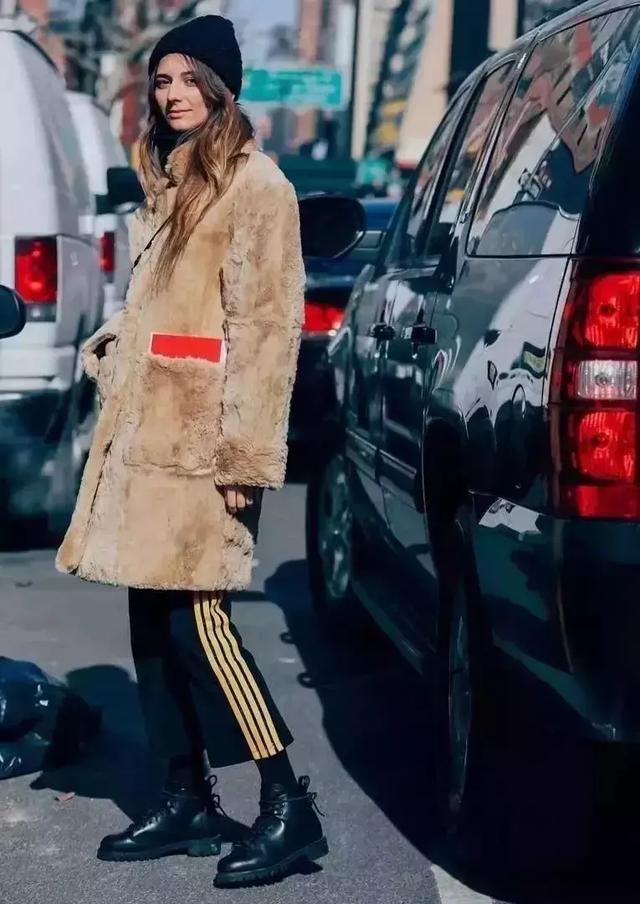 對於年輕一背,高街穿搭更受歡迎,不過像以下的搭配就能老少通吃,側邊條紋闊腿褲+羔羊絨機車外套,搭配起來毫無違和感超百搭的!