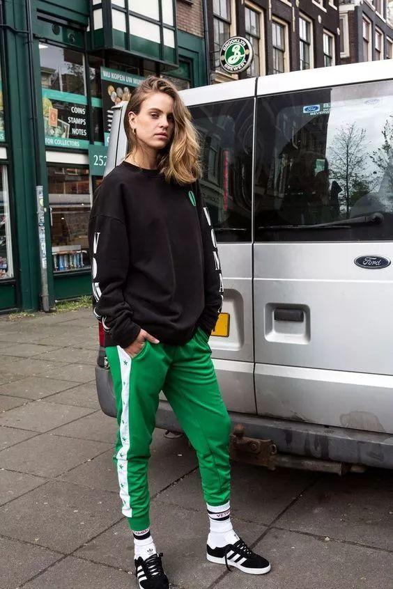 說到運動校服褲玩的最好的,非Gigi莫屬了,