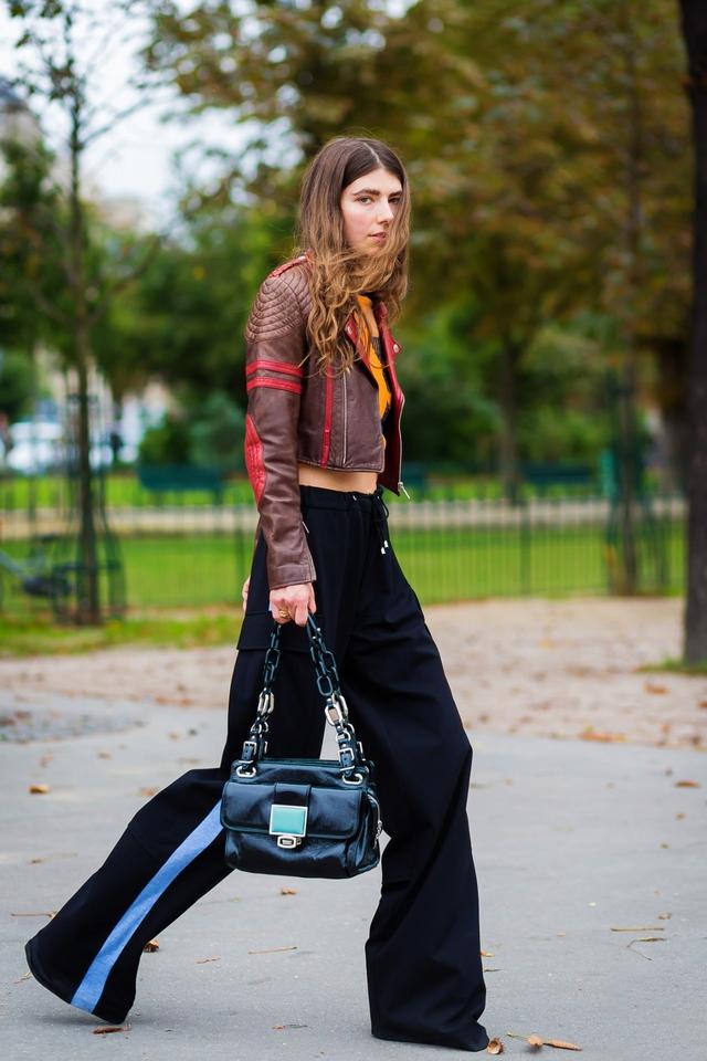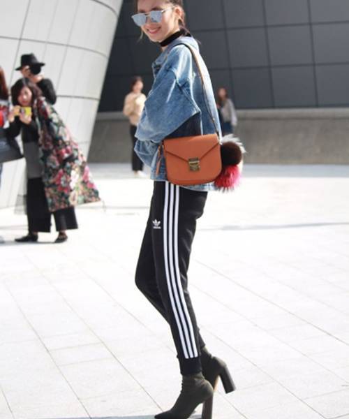 如果你也是有這麼一個遠大的理想想要當一名時髦精的話,今年春天不妨拿起條紋側邊時髦一番。正在煩惱的可以參考韓裔名模Irene Kim的穿法,牛仔外套搭配高跟短靴,能中和條紋側邊褲運動感,在搭上可愛的側背鏈條包,相信也沒人會說你是去跑步的。(如果你喜歡穿這樣去跑步也沒關係哦!)。可能你覺得Irene就這麼穿去時裝周有點不合禮儀,但人家正踩著時髦的點叻。