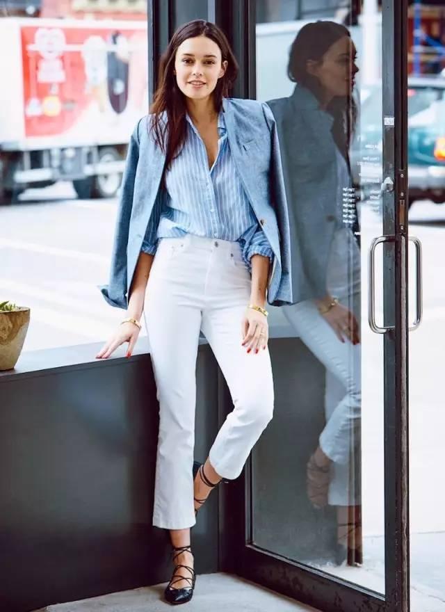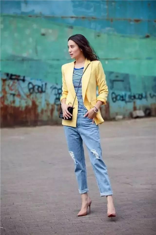 淡粉色或是裸粉色西服外套,搭配起來也非常出彩。