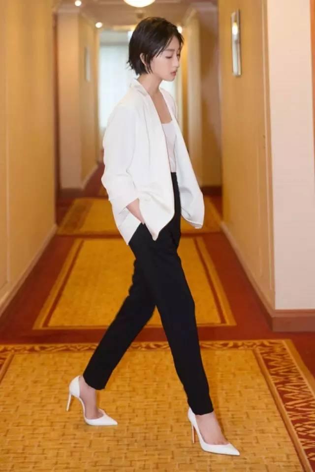 而周冬雨則向我們證明了,只要搭配得當,西服外套也完全可以穿出清新甜美的感覺。