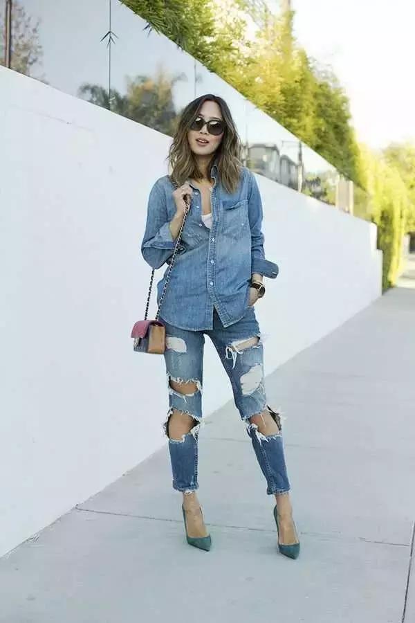 乞丐風【“破破爛爛”】的牛仔褲+高跟鞋