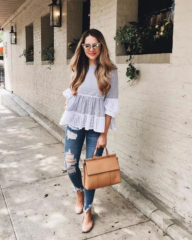 這身搭配更適合喜歡文藝氣息的妹子,搭配破洞褲,中性帥氣,卻也不失復古感。