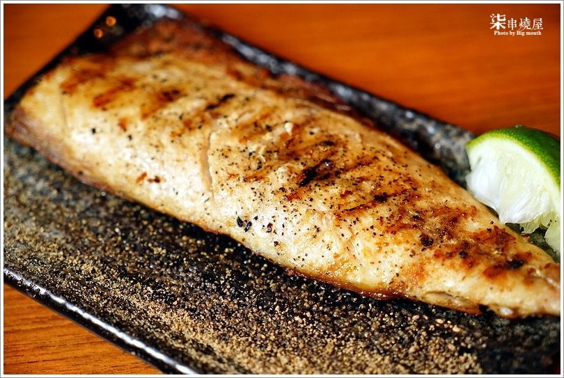 ▼鯖魚(110元/尾),原味的鯖魚經燒烤後,一旁搭配檸檬片與椒鹽,都可以視個人喜愛添加享用!