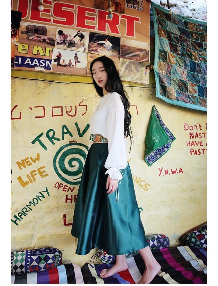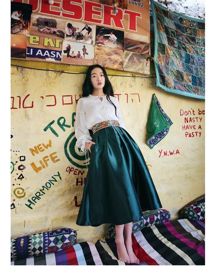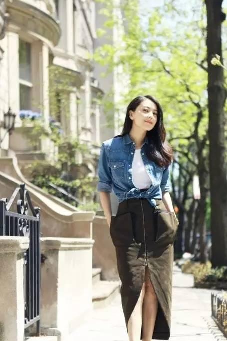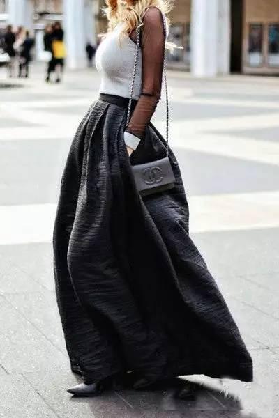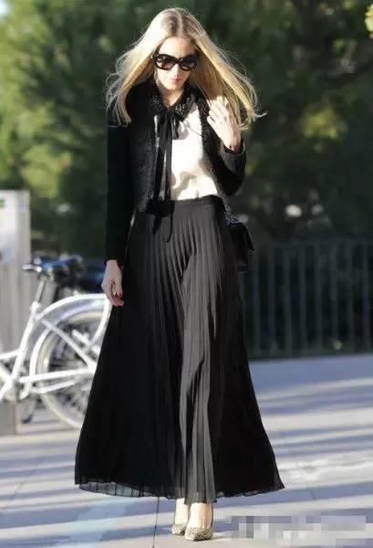 搭配半身長裙就要有一個亮點,純色的短裙需要搭配有設計感的上衣,才是好看吸引人的。