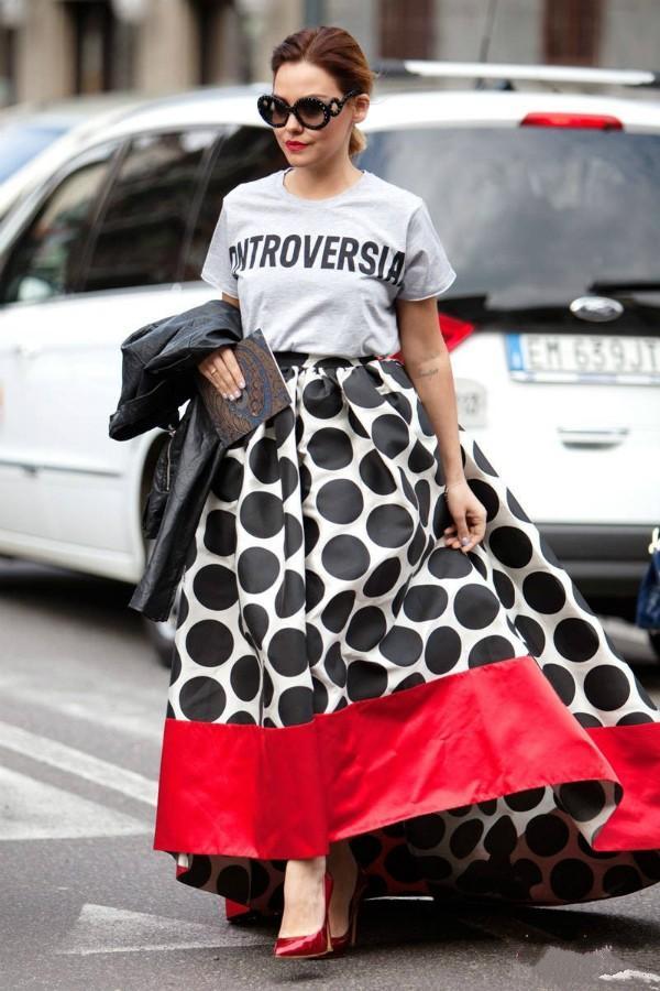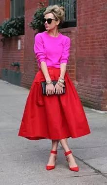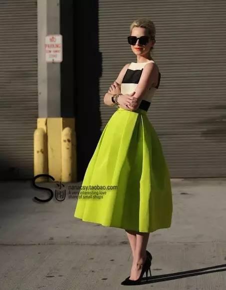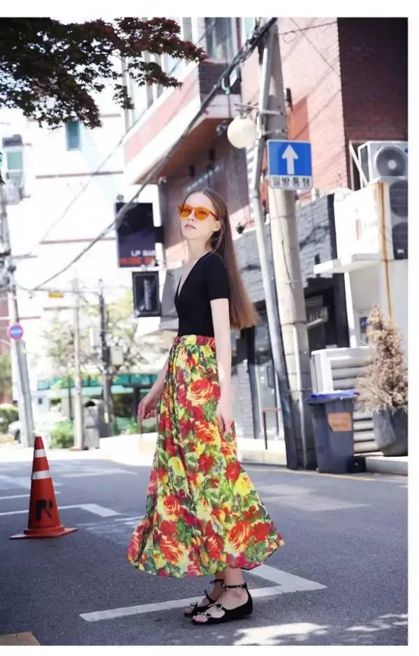 而印花、百褶、條紋的半身設計則需要搭配一些簡單的上衣款式,切忌各種元素混搭。