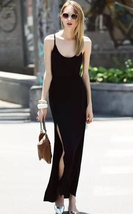 無論是半身開叉還是一件式開叉長裙都很顯腿型,拉長腿部線條這一優點,看圖便知。