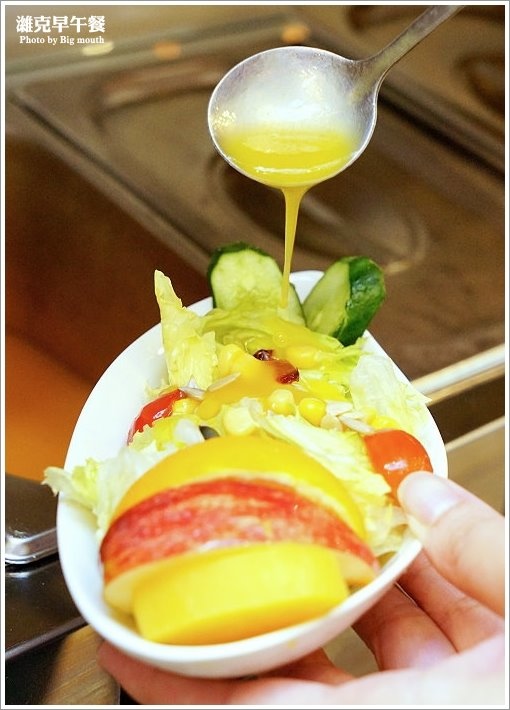 ▼這一份沙拉我們搭配的是芒果沙拉醬,因為醬料比較稀所以我們就淋了厚厚一層上去XD