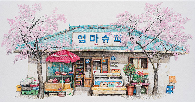 南韓藝術家Me Kyeoung Lee花了整整20年,畫出了她在街上看到的各種各樣便利商店。