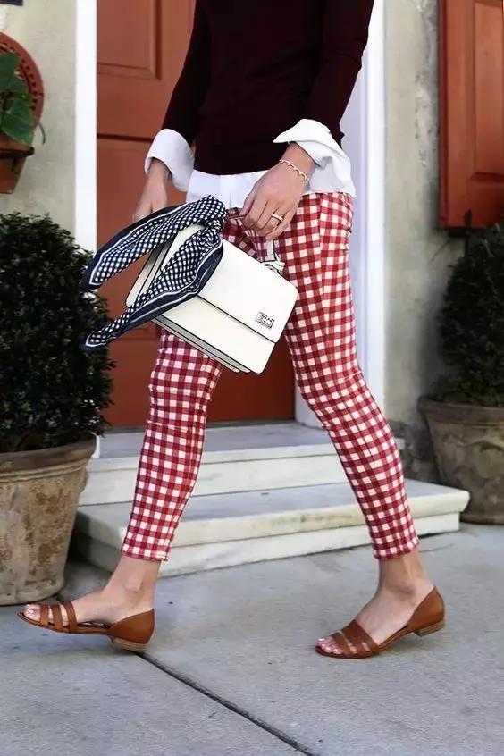 如果不喜歡大面積的維希格紋,也可以小面積來點綴,比如用一雙鞋子。