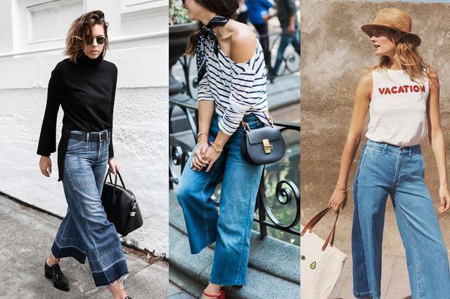 牛仔闊腿褲就會很好的掩飾你身體中間部分比較胖的缺陷,並且還能掩飾你的腿型,顯瘦。