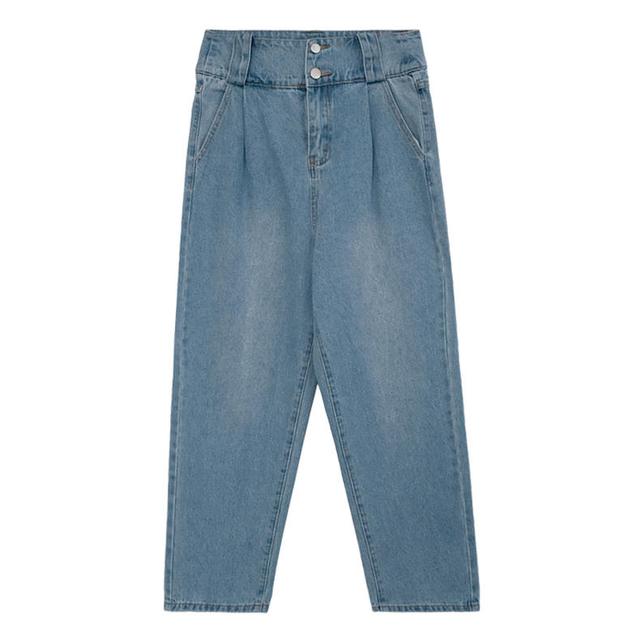 寬腰設計,加上兩顆金屬扣裝飾,能夠輕鬆的勾勒出纖細的腰線,並且具有隱藏腰腹肉肉的作用。上寬下窄的版型,剛好符合梨型身材的特點,真正做到揚長避短。腰間的褶皺處理,增添了褲子的層次感和設計感。