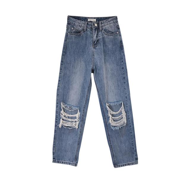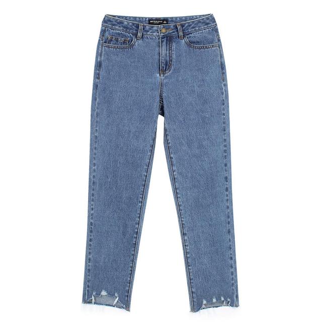 腰頭設計平整,貼合腰部曲線,上身利落整潔。寬鬆的版型,能夠反襯出腿部線條的纖細。褲管處的對稱破洞設計,能夠增添時尚個性,帶來十足的街頭帥氣個性,上身更有腔調感。
