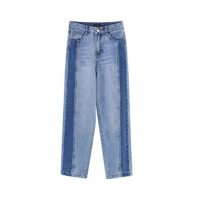微寬鬆的闊腿版型,能夠掩飾腿部的大缺點。自然過渡的水洗藍色,非常適合春夏季節的小清新。褲腳處的拼色處理,豐富了整體的層次感。褲腳的開叉設計,對腳踝有一定的修飾作用,令腿部的線條看上去更加完美。