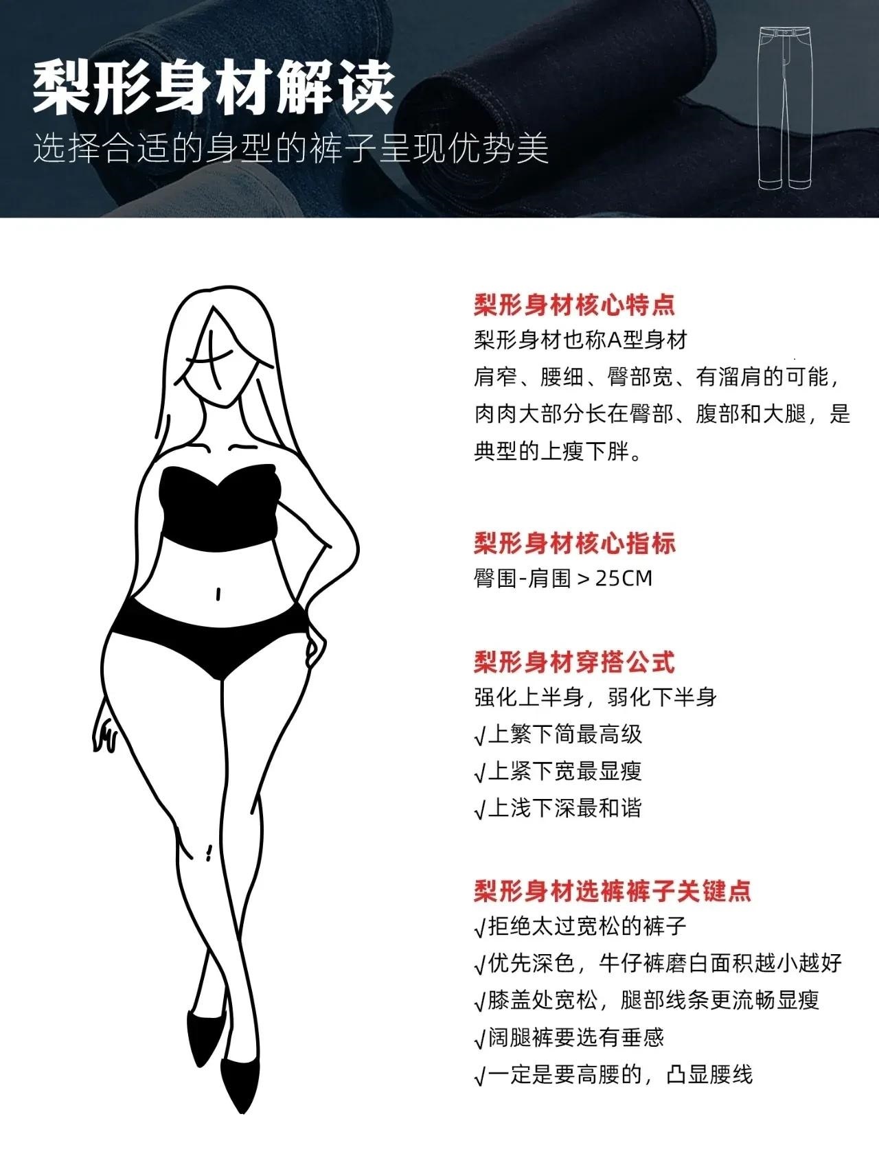 牛仔緊身褲對於梨形身材來說,會把自身的缺點顯露無疑,