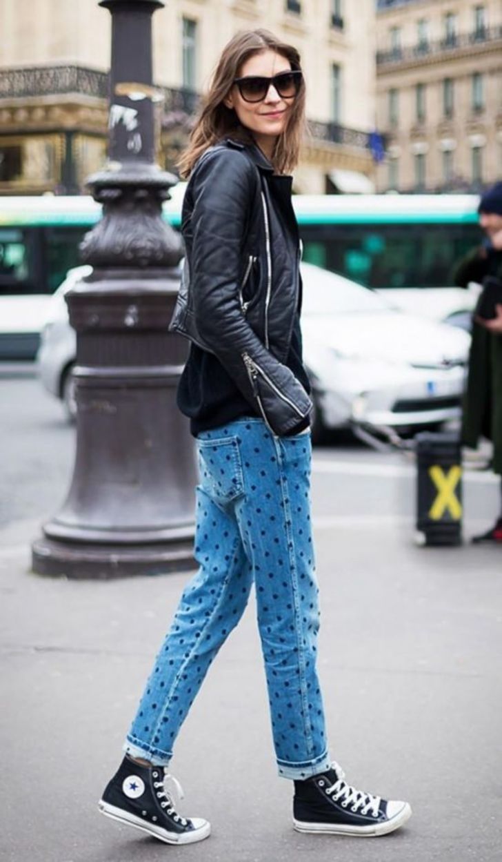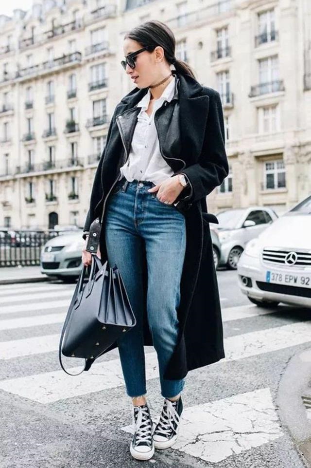 瘦腿褲是最適合高幫鞋的褲寬,尤其當你選擇和鞋子同色系,最能顯腿長。