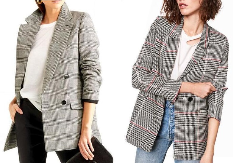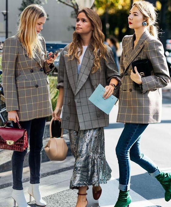 復古潮流搭上女性崛起,西裝外套也一改呆板形象,中性灰、淺棕色格紋應用,
