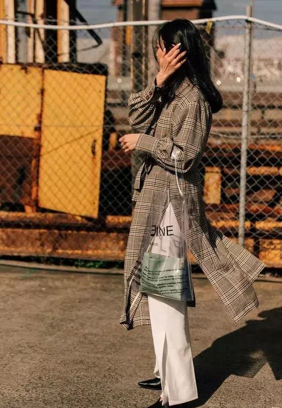 當天氣開始轉冷,格紋花色的長版大衣也是很好的選擇,