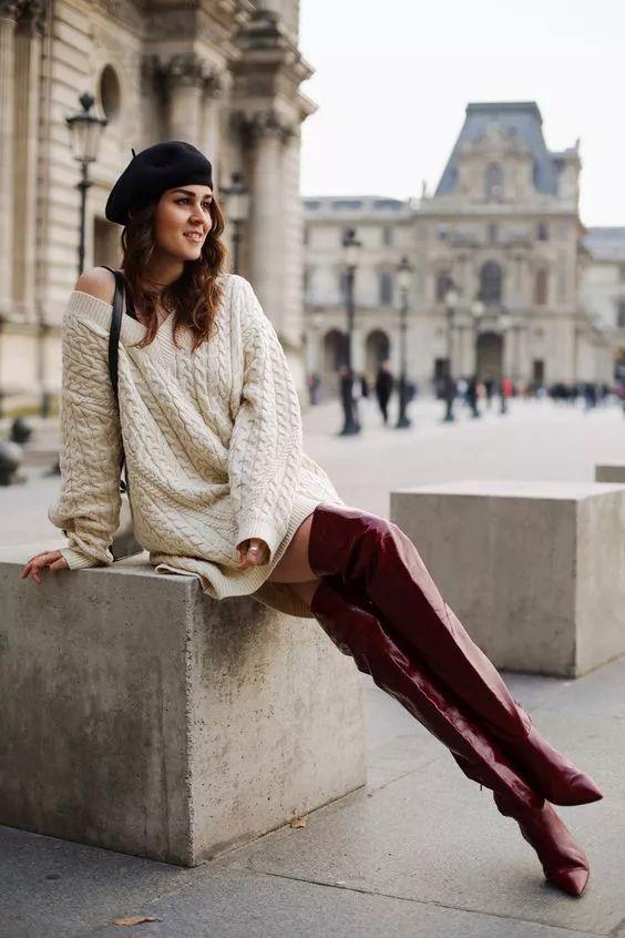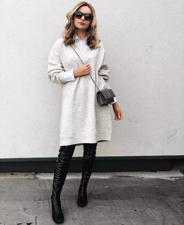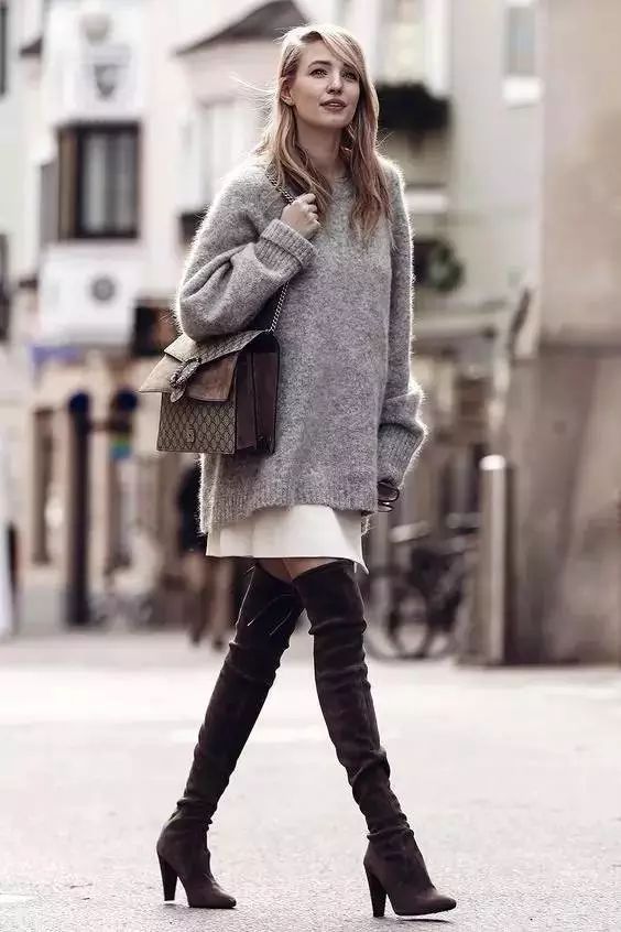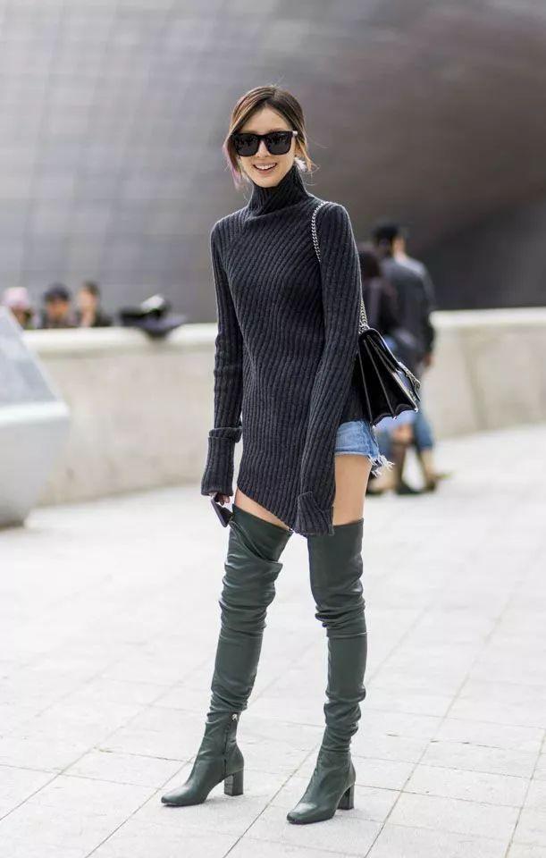 而用來搭配過膝靴的針織裙也不必太長,大腿一半左右的位置,讓你即刻就能擁有大長腿。