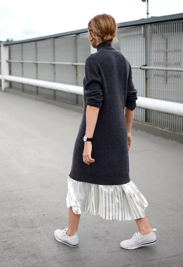 夏天的百褶裙先不要收起來,搭配毛衣裙剛剛好。