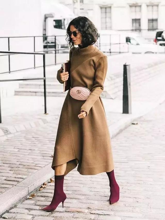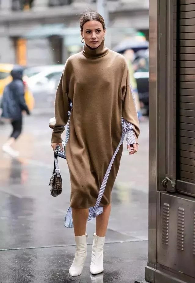 拼接毛衣很有層次感,不過在選擇這類毛衣裙的時候,要盡量選擇一些顏色上比較素氣的,會更方便搭配一些。