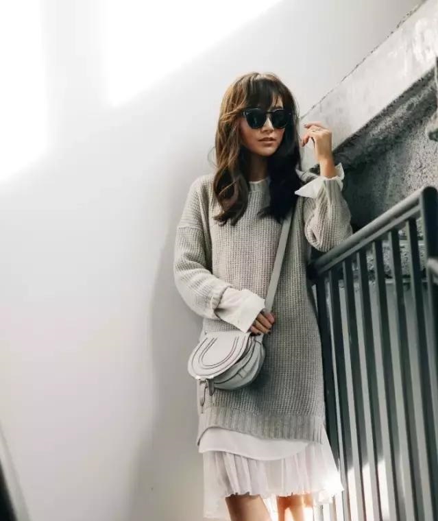 如果覺得自己身材不夠完美的話,寬鬆長款的針織裙絕對是不二的選擇。