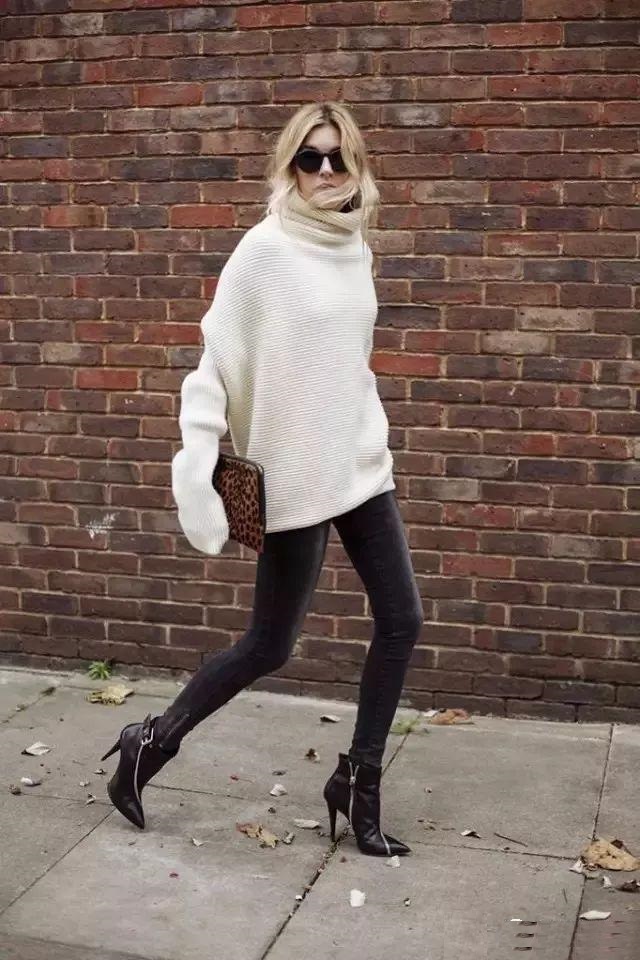 寬鬆的毛衣雖然版型大,但藏肉效果一流,什麼小肚子、大屁屁穿上它都通通不見了。