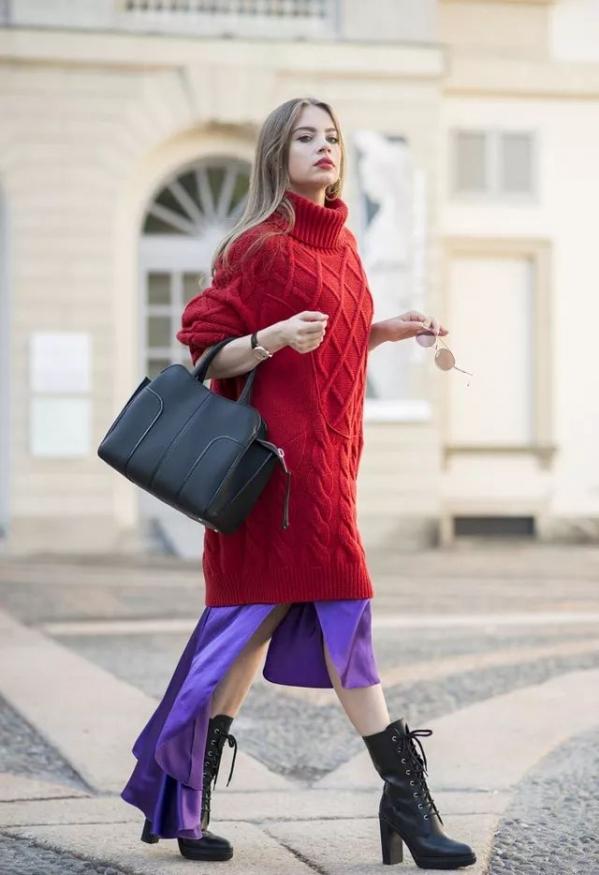 紅色和紫色的搭配不僅能瞬間讓你成為焦點,這兩者顏色的搭配還自高級感,讓你看起來更優雅迷人。