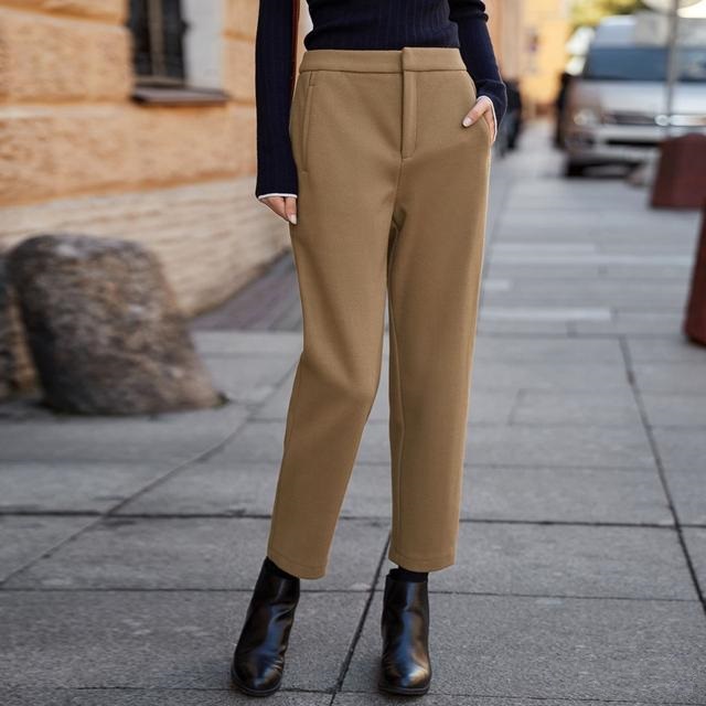 九分褲在秋冬天中穿的次數會很多,駝色外套和九分褲也都是很百搭的單品,雖然都是比較簡單的款式,搭配在一起也很美~▼