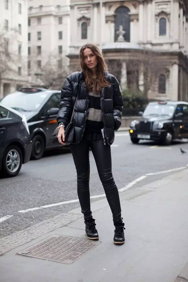 飛行員夾克+Leggings 是今年秋冬的大熱穿法,Bomber Jacket (飛行員夾克)火了好幾季今年尤其受歡迎,時髦的女孩們幾乎人手一件。短款的Bomber Jacket 和黑色Leggings這對最時髦CP很多人都可以輕鬆駕馭,並沒有那麼難穿,上身蓬鬆,下身瘦緊,視覺上看起來還會有顯高的效果。