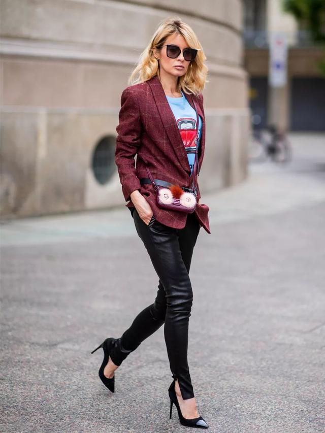 皮質Leggings搭配靴子比其它材質的Leggings更自然。