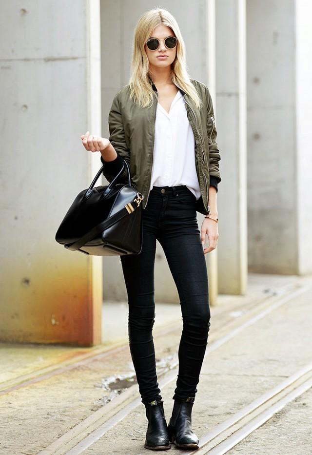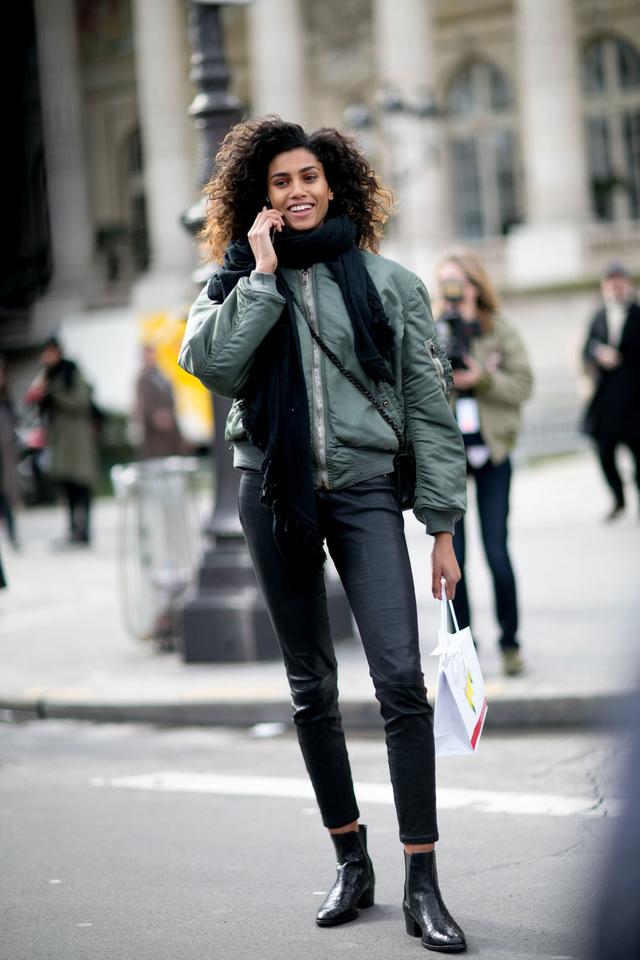 綠色系的飛行員夾克也是今年街拍中高出鏡率的時髦單品。