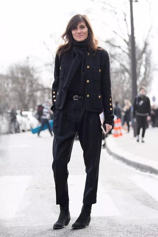 黑色的針織衫和褲裝,都很容易搭配出時下很流行的“男仔氣”,這種穿搭很日常,也是被實踐最多的搭配。