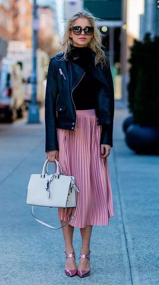 有了著一黑色內搭作為調劑,想要讓酷酷的機車皮衣混搭優雅的仙女裙都不是問題啦。