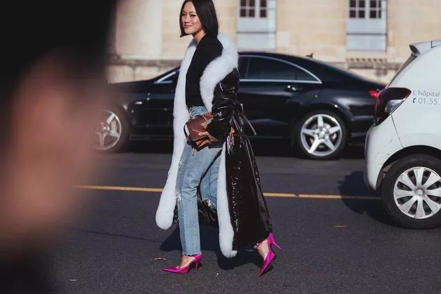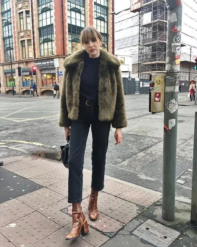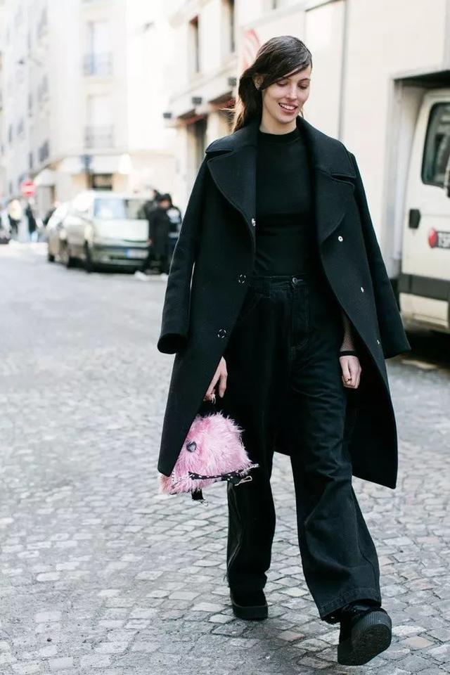 當搭配更具個性的毛絨外套時,黑色內搭讓整體造型在街頭感十足的情況下更增添了一絲優雅。