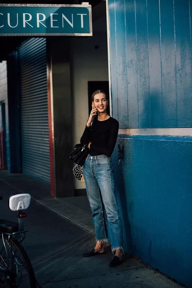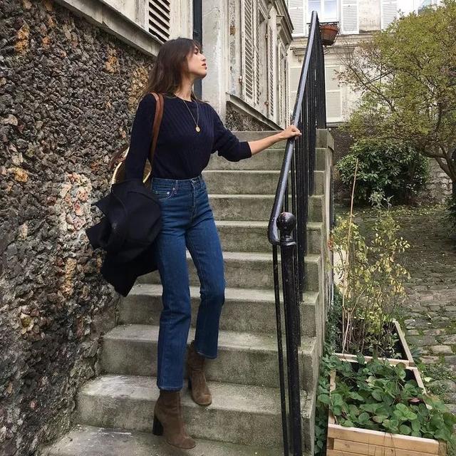 萬能的牛仔褲是休閒風格的不二法則,而當黑色針織搭配丹寧牛仔,那又是另一種優雅的複古美。