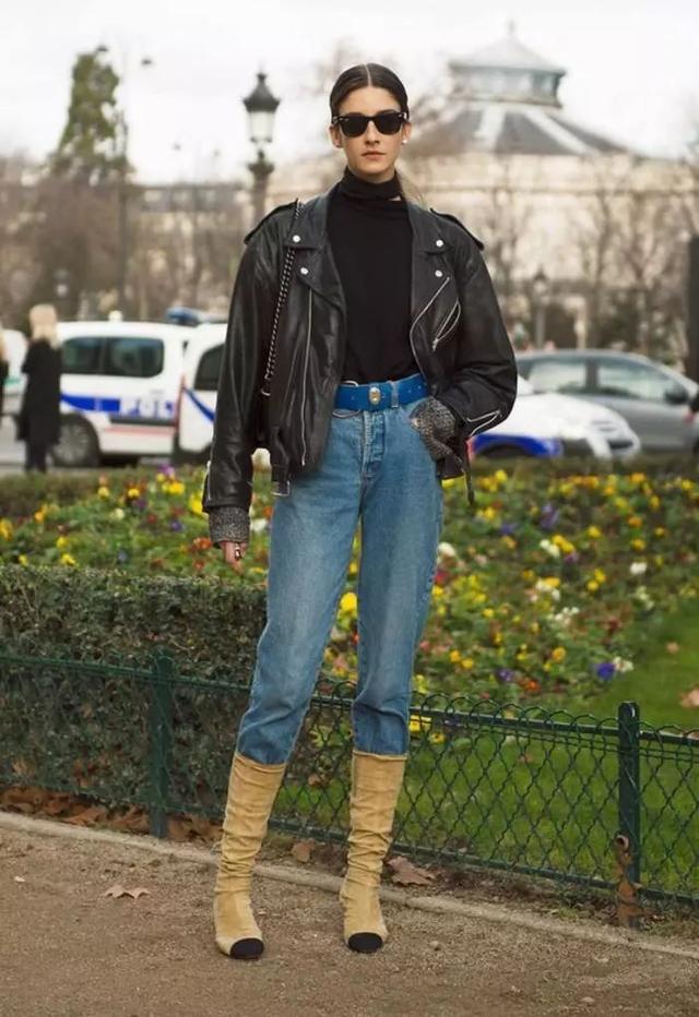 黑色針織衫搭配皮衣的可行性原因有很多,最最關鍵的還是能很好的降低皮衣的冷酷感,提供更多的溫暖質感。