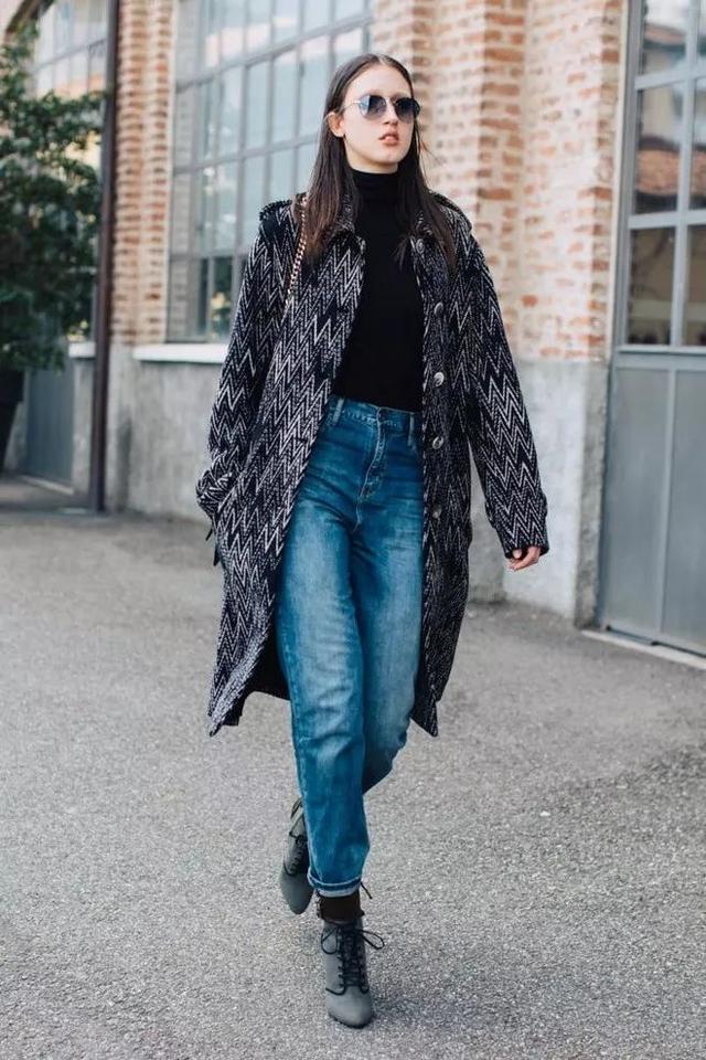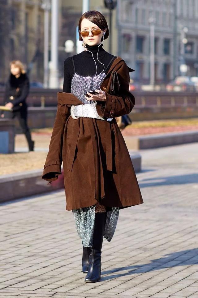 再冷一點的時候,還可以在外面疊套外套大衣,層次感的亮點一下子就出來啦。雖然只展示出一個小小黑領,但少了這一件,整個搭配就是失敗了。