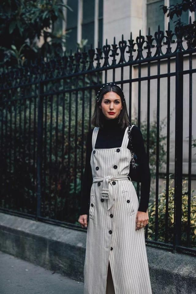 疊穿有一個很大的有點就是,可以延長襯衫,連衣裙,甚至是夏天的薄紗裙這類非秋冬單品的使用率,只要疊穿一件黑色針織打底衫,就能在打造混搭的同時,還禦寒於無形之中。