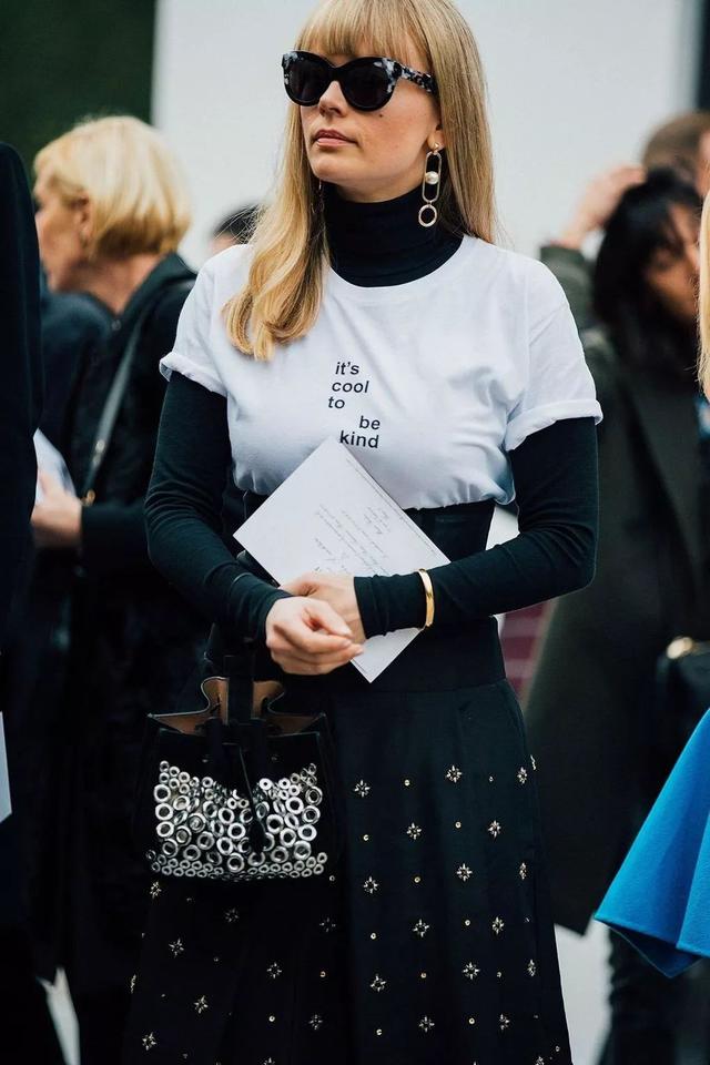 入門級的疊穿,就少不了黑色高領針織的“安心丸”,比如疊穿體恤,衛衣等。