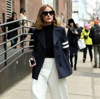 無論西裝、大衣還是夾克,都躲不開闊腿褲的搭配,短款的夾克和闊腿褲更是般配了,