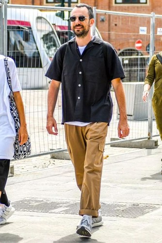 將短靴換成穆勒拖,多了時髦度和潮味,all black照樣夠酷。