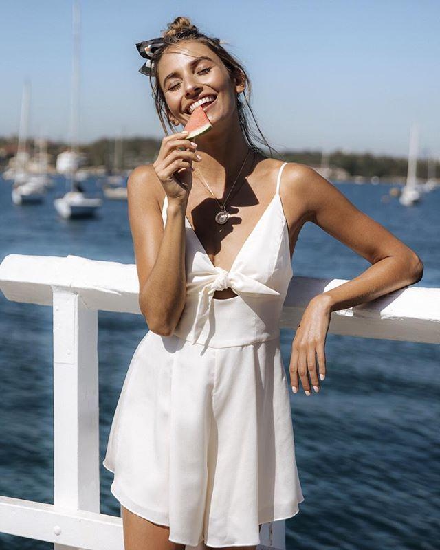 低領加上細細的吊帶性感又清爽,加上細手鐲之類低調的裝飾,超級適合去度假,也不用愁穿搭啦。