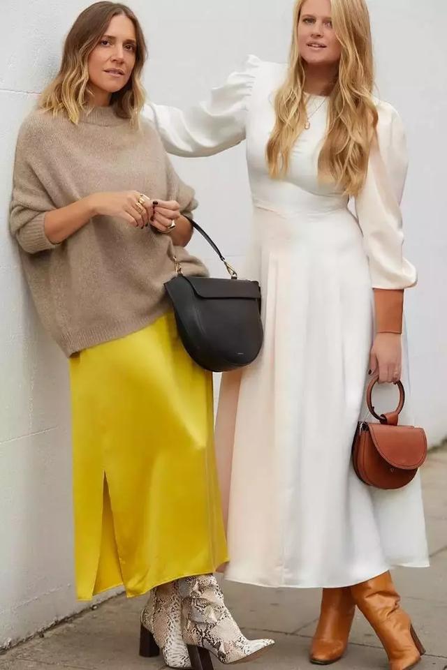蛇紋短靴配長裙超好看,但是前提是裙子夠飄逸夠溫柔,有了風格的對比才行。