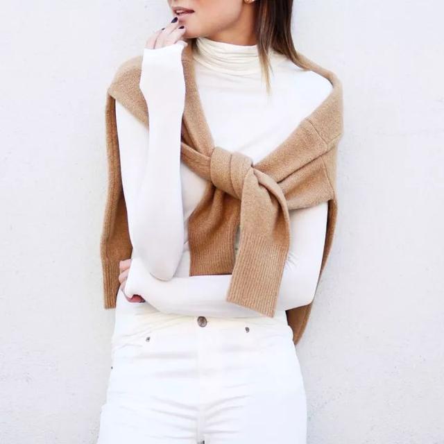 白色小高領雖然沒有黑色小高領那般神秘時髦,但穿上後能夠超顯白,自帶女性的柔美、優雅。