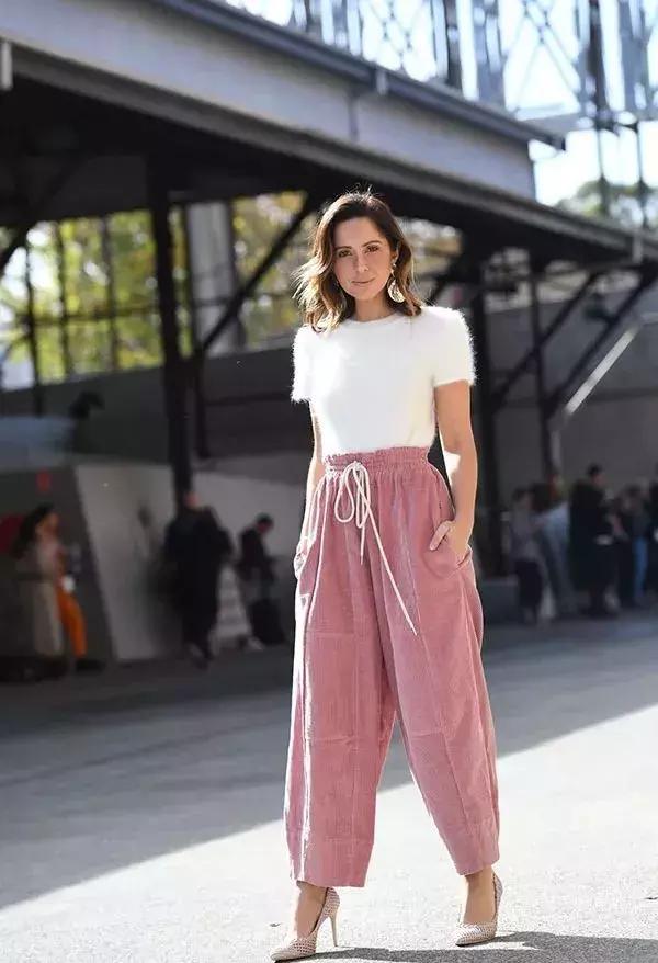 首先我們不要選擇修身款的褲裝,pick闊腿褲是最佳選擇。