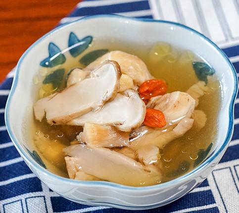 新鮮松茸(切片) 2個、雞腿/雞1只、干貝2-3個、枸杞若干、食鹽1茶匙